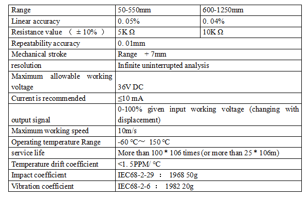 Performance parameters of displacement sensor:
