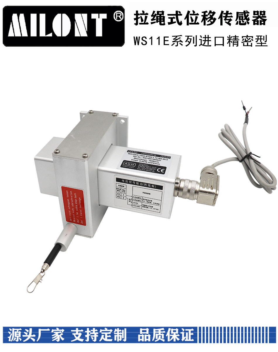 WS12E系列拉繩位移傳感器是德國BEBIK進(jìn)口傳感器,內(nèi)部采用電位器原理,精密的機械結(jié)構(gòu)和先進(jìn)的排線工藝,使其很好的解決了工況復(fù)雜環(huán)境下造成的掉線,卡線等問題,量程0-10000mm可選,可輸出模擬信號:0-5V,0-10V,4-20mA。數(shù)字信號:RS485等。主要適用于:倉儲位置定位、水庫大壩保護(hù)、閘門開度控制、壓力機械、造紙機械、紡織機械、金屬板材機械、包裝機械、印刷機械、水平控制儀、建筑機械、工業(yè)機器人、射出機、木工機械、電梯、空氣壓縮機、油壓機、高度機、X-Y軸及其它長度位移、液位測量等自動化測量場合。